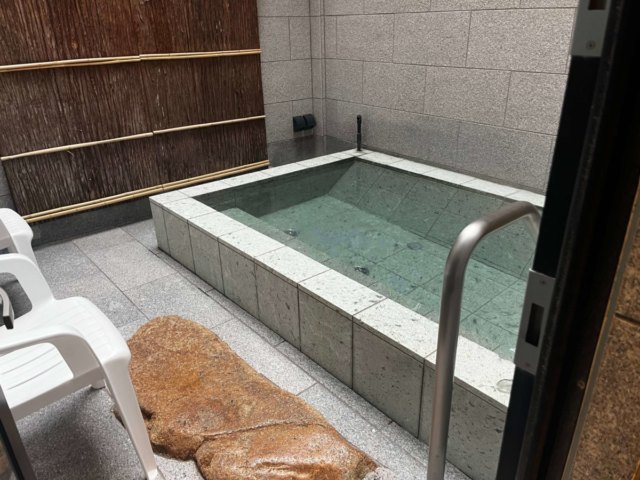 外気浴スペースには露天風呂と椅子があり、そこで身体を休める。