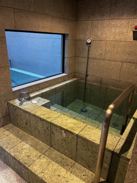 サウナ室を出たら、シャワーを浴びてから水風呂へ。水風呂は深く、肩まで浸かれる。